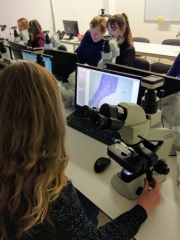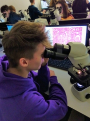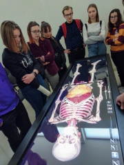 Uczniowie klas drugich o profilu biologiczno-medycznym brali udział w zajęciach na Wydziale Medycznym Uniwersytetu Rzeszowskiego. Wysłuchali interesującego wykładu z zakresu medycyny sądowej, zwiedzali prosektorium i nowoczesne sale ćwiczeniowe do nauki anatomii człowieka. Zainteresowaniem cieszył się też wirtualny stół anatomiczny, który pozwala na wyświetlenie interaktywnego obrazu całego ciała człowieka i jego wirtualne przycinanie w dowolnie wybranej płaszczyźnie. Następnie, jak prawdziwi studenci medycyny, obserwowali preparaty mikroskopowe tkanek człowieka.