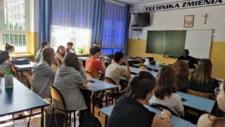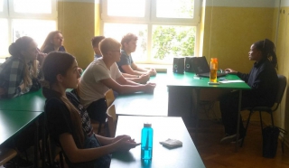 Aktualności Zajęcia z Native Speakerami 9lo 22 czerwca, 2022 Dzięki współpracy naszej szkoły z WSIiZ gościliśmy w szkole Native Speakerów z Zimbabwe. Uczniowie mieli okazję poznać ich kulturę i zwyczaje oraz zadawać pytania w języku angielskim.