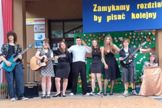 Wreszcie nadszedł ten wymarzony letni dzień, kiedy mówimy szkole „do widzenia” i rzucamy się w objęcia wakacji! Rok szkolny pożegnaliśmy z uśmiechem, wspominając wydarzenia z ostatnich dziesięciu miesięcy. Wysłuchaliśmy występu kolejnej już grupy muzycznej. Okazuje się zatem, że talentów w naszej szkole nie brakuje.