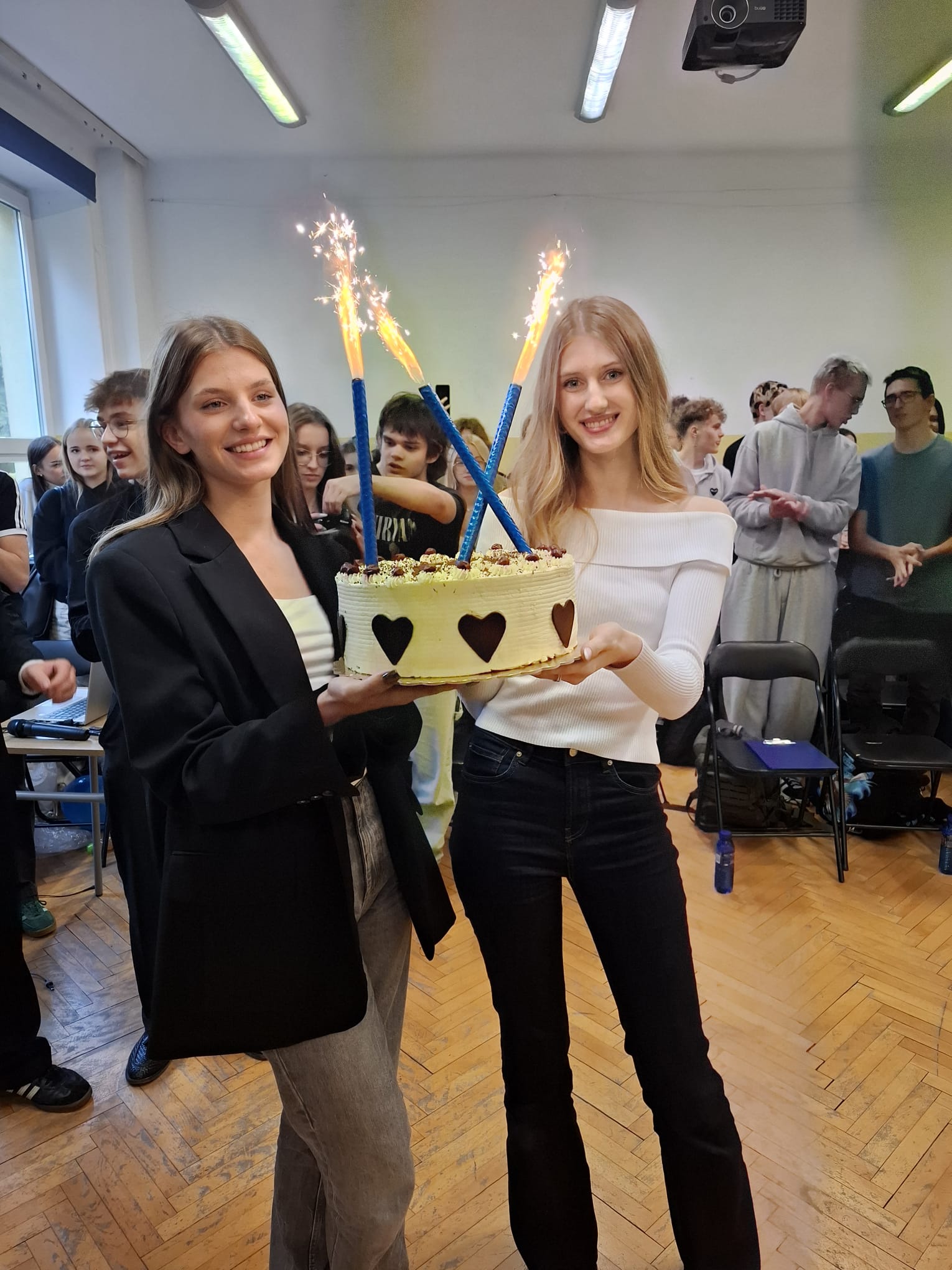 Nie tylko nauczyciele mieli okazję do zabawy — również uczniowie mogli sprawdzić swoją spostrzegawczość i pamięć, biorąc udział w quizie Kahoot, w którym należało rozpoznać nauczycieli po ich zdjęciach z dzieciństwa. Zabawne fotografie i trafne, a czasem zaskakujące odpowiedzi wywołały wiele śmiechu i radości.