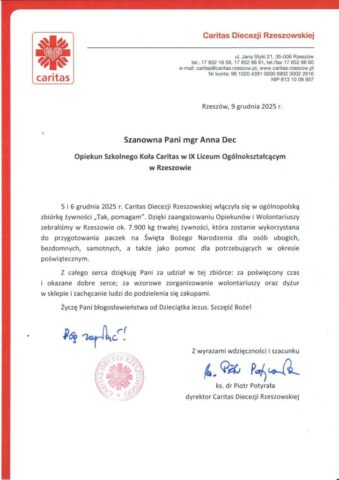 Szczególne podziękowania dla Wszystkich Wolontariuszy (58) i opiekuna p. A. Dec, którzy pełnili posługę przez 2 dni w sklepie FRAC przy ulicy Lwowskiej.