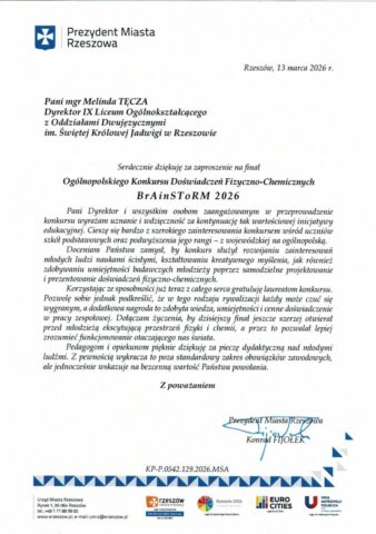Życzymy wszystkim uczestnikom, aby ich pasja do nauki i poznawania praw rządzących światem nigdy nie wygasła, a ciekawość naukowa prowadziła ich do kolejnych odkryć. Niech wiedzę chłoną z takim zapałem, jak czarna dziura pochłania wszystko, co znajdzie się w jej zasięgu, a fascynacja fizyką i chemią niech towarzyszy im przez kolejne lata edukacji i przyszłej kariery naukowej.