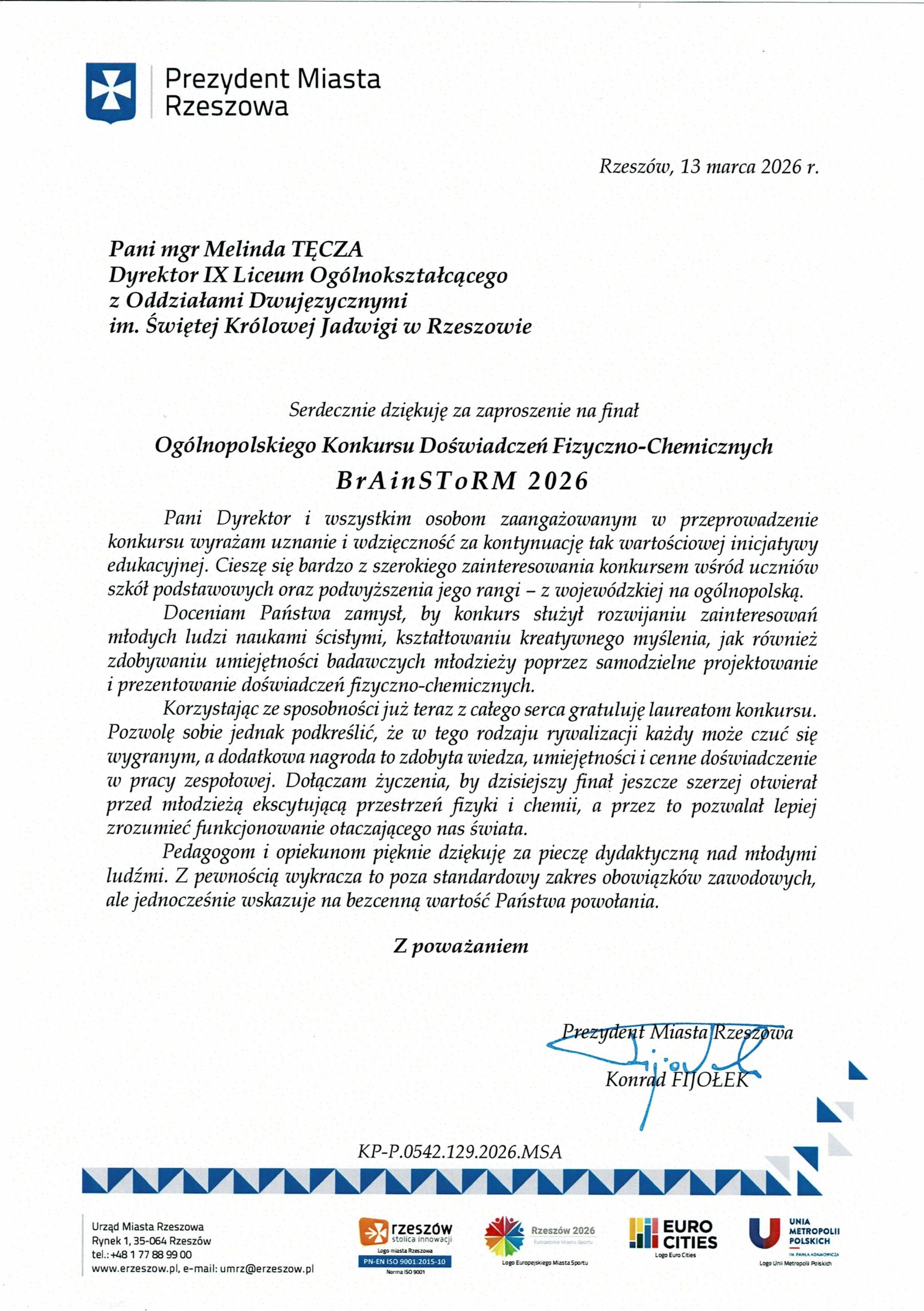 Kto przesądny, ten wie, że liczba trzynaście bywa uznawana za pechową. W tym roku okazała się jednak wyjątkowo szczęśliwa dla młodych pasjonatów nauki. 13 marca 2026 roku (piątek) na terenie WSPiA Rzeszowska Szkoła Wyższa odbył się Finał Ogólnopolskiego Konkursu Doświadczeń Fizyczno-Chemicznych BrAinSToRM 2026 – wydarzenie pełne pasji, naukowych odkryć i spektakularnych eksperymentów z zakresu fizyki i chemii.