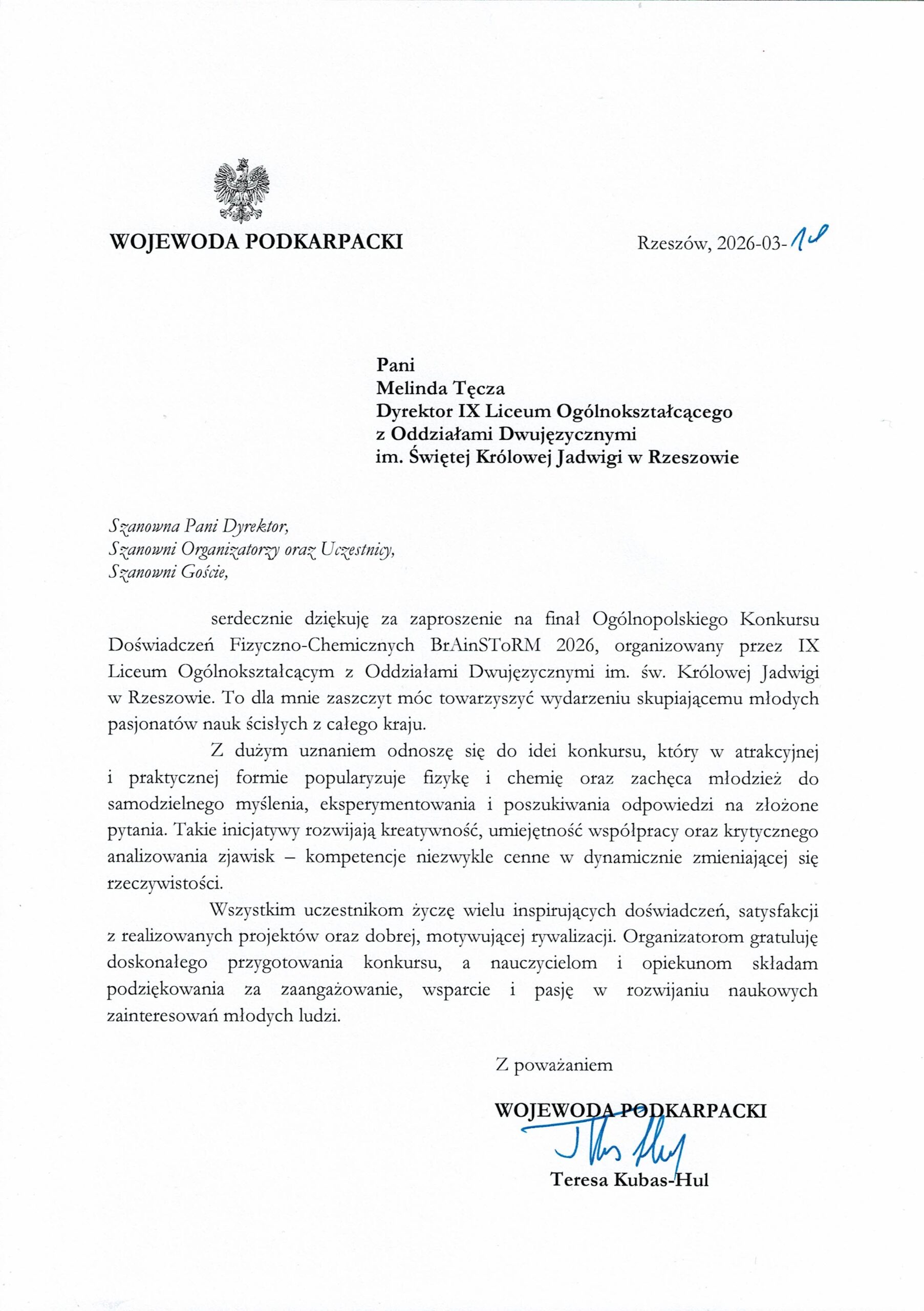 Serdecznie gratulujemy wszystkim laureatom, ale również wszystkim finalistom, którzy z ogromnym zaangażowaniem zaprezentowali swoje doświadczenia i udowodnili, że młodzi ludzie potrafią z pasją odkrywać tajemnice świata nauki. Sam udział w finale ogólnopolskiego konkursu jest wielkim osiągnięciem i dowodem ogromnej pracy, ciekawości świata oraz odwagi w podejmowaniu naukowych wyzwań.
