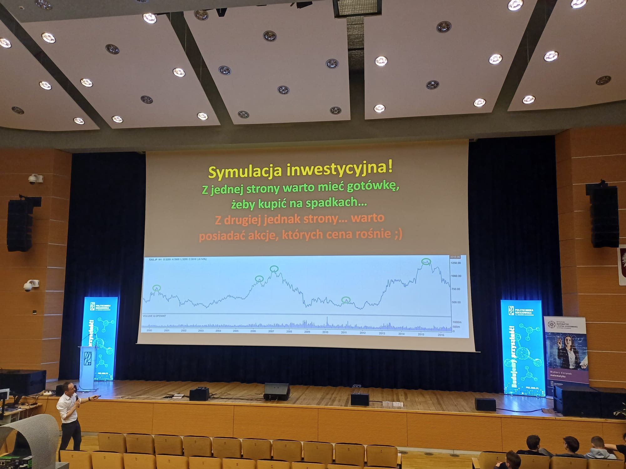 Dzień Liczby Pi był również okazją do wysłuchania „Giełdowego rollercoastera”, czyli ciekawych wykładów dotyczących symulacji inwestycji giełdowych.